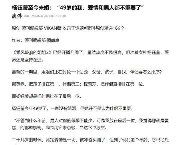 有人体面,有人狼狈 现在再看这三个人的处境,差别不是一般大。 杨钰莹今年52岁,虽然一直单身,但这些年偶尔参加综艺、开演唱会,状态很好。 提起过往,她只说“值得深爱”,从不多说别的,始终保持着体面。、 信息来源:杨钰莹至今未婚:“49岁的我,爱情和男人都不重要了”
